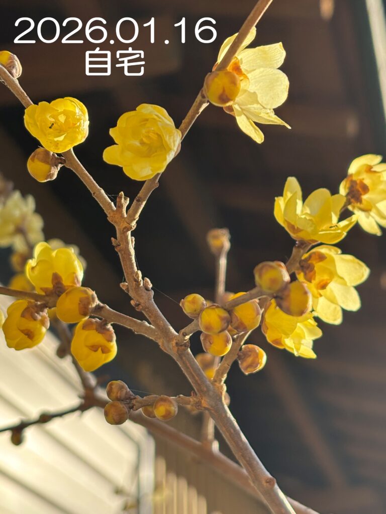 我が家のロウバイは昨年12月19日ころから開花し始め、今はもうほぼ満開。