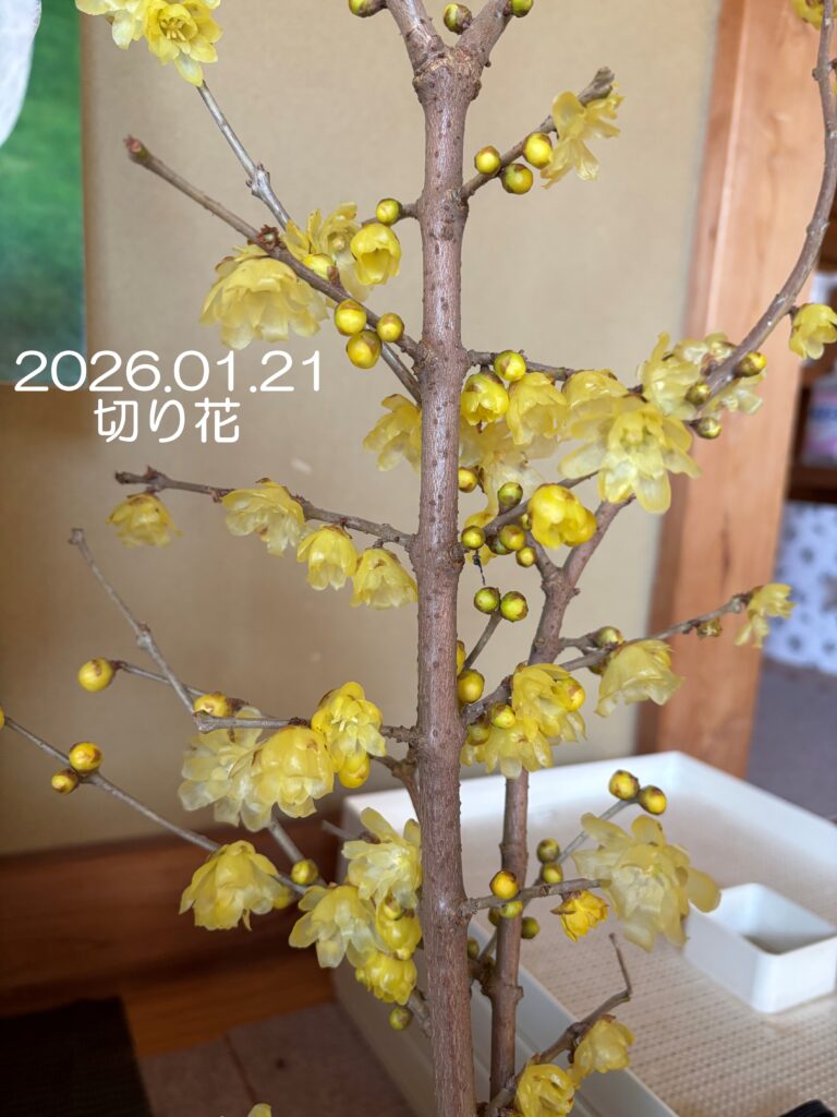 毎年お楽しみのロウバイ、今年はJAで切り花を購入して室内でも香りを楽しみました。