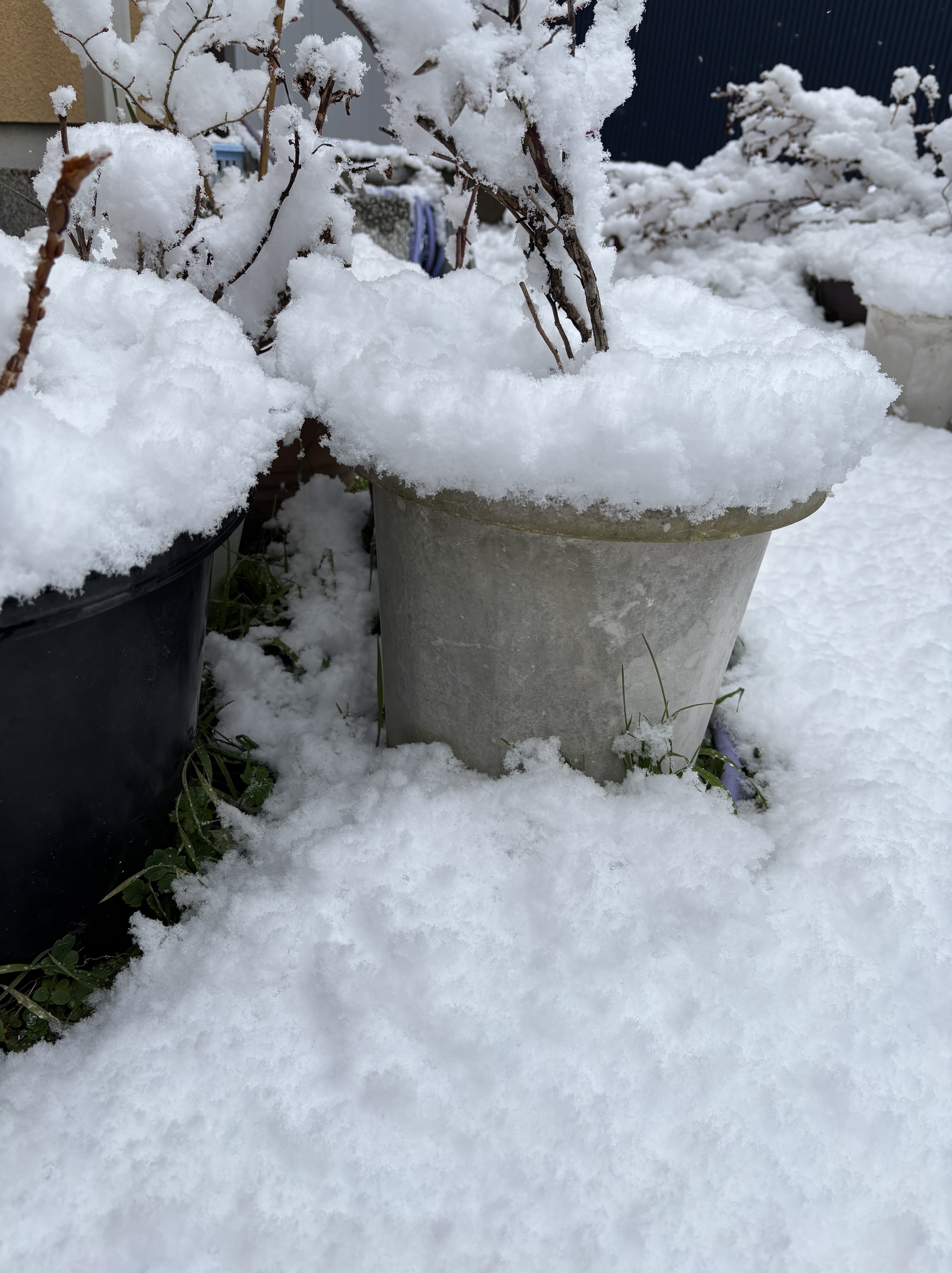 山本自宅の植木鉢にもこんなに雪が!
